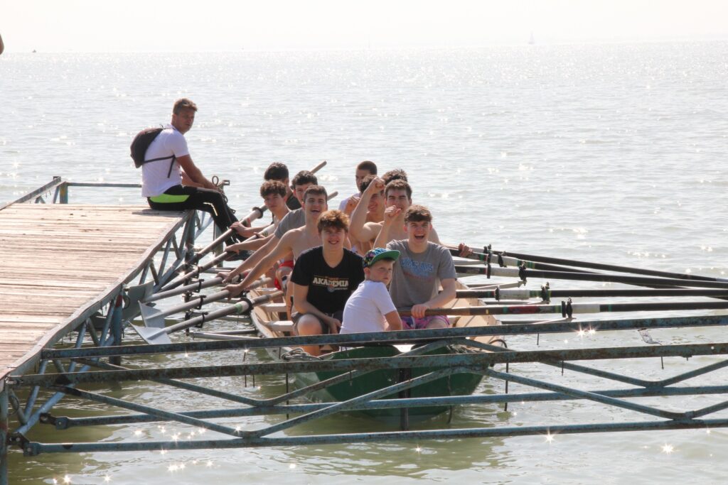 A Balaton hullámai azért kihívást jelentettek, de a fiatalok gyorsan elsajátították az evezés komplexitását.